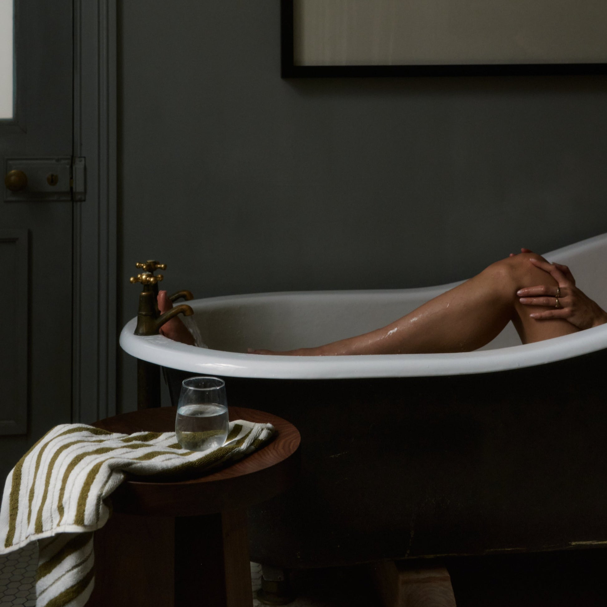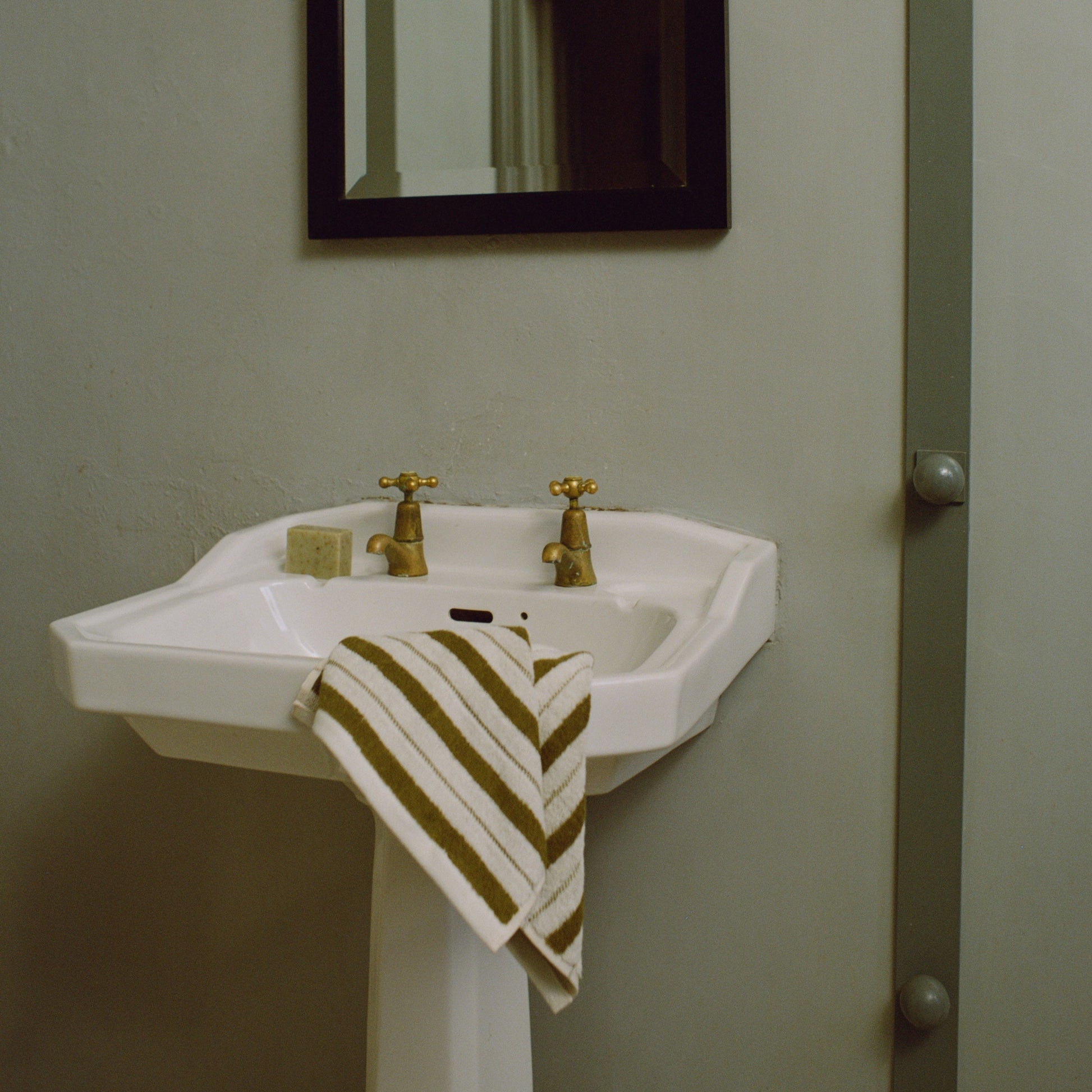 Realised in a deep caper (warm green) and chalk (off-white), the colour way is fresh, while conjuring a familiarity within the bathroom space.