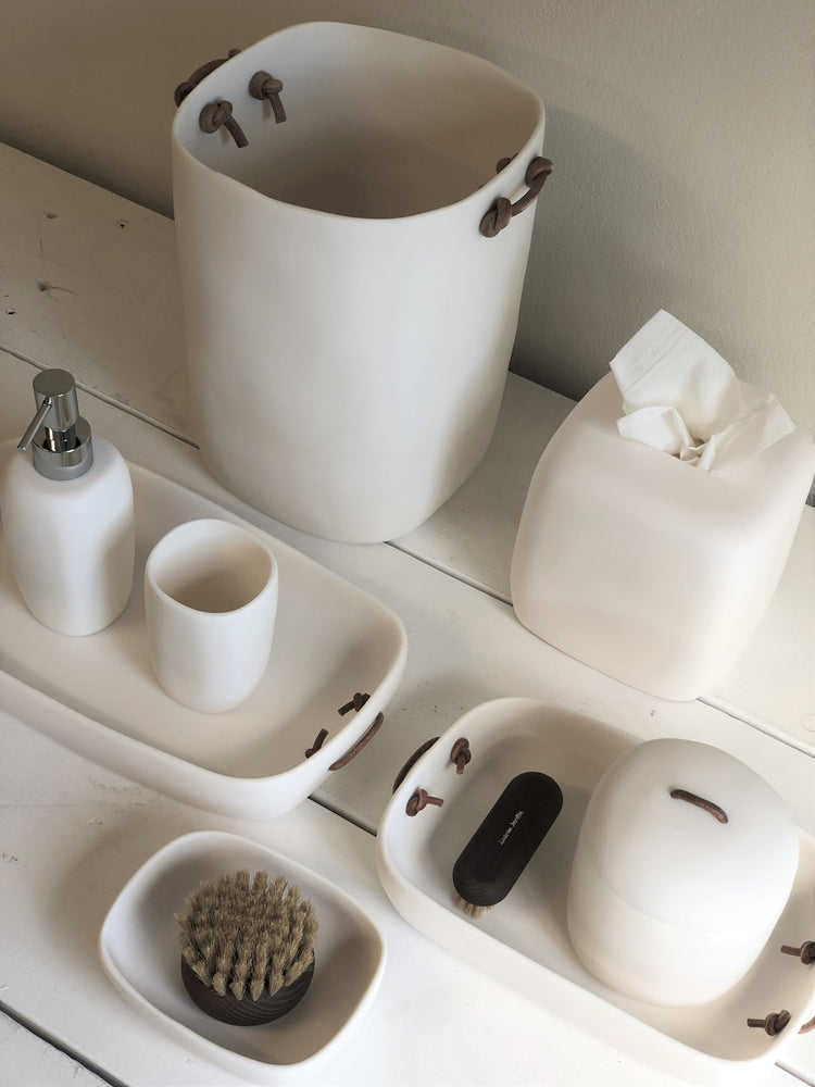 The pieces in the TF Design bathroom collection are hand sculpted resin by Tina Frey in San Francisco, California.