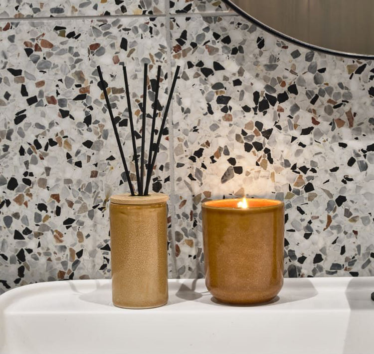 Crafted from natural, biodegradable rapeseed wax, the scented candle comes in a stoneware vessel with a gorgeous reactive glaze finish.