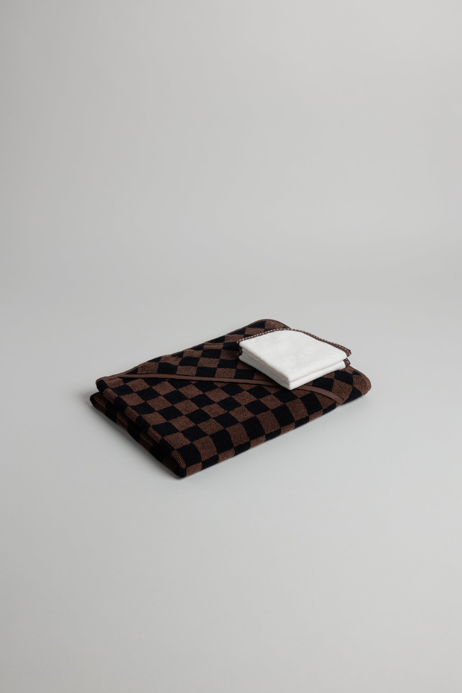 The range features a cosy hood, softly curved corners, contrast binding and embroidered stitch detail. Thoughtfully presented in an organic cotton bag with delicate ribbon tie, The Baby Towelling Set is an elevated essential for new parents, and those looking to gift to them.