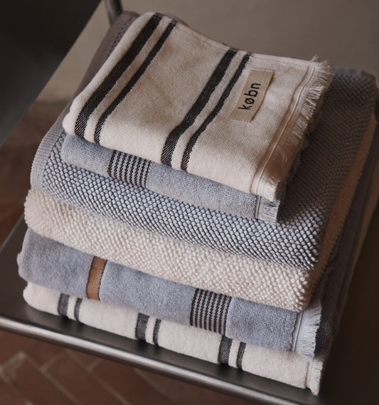 Købn has since grown to include hand towels and bath mats. Now labelled 'anywhere towels', they are used for bathrooms, poolside, beach days, picnics, yoga, holidays, the gym, powder rooms, hotels and air bnb's.
