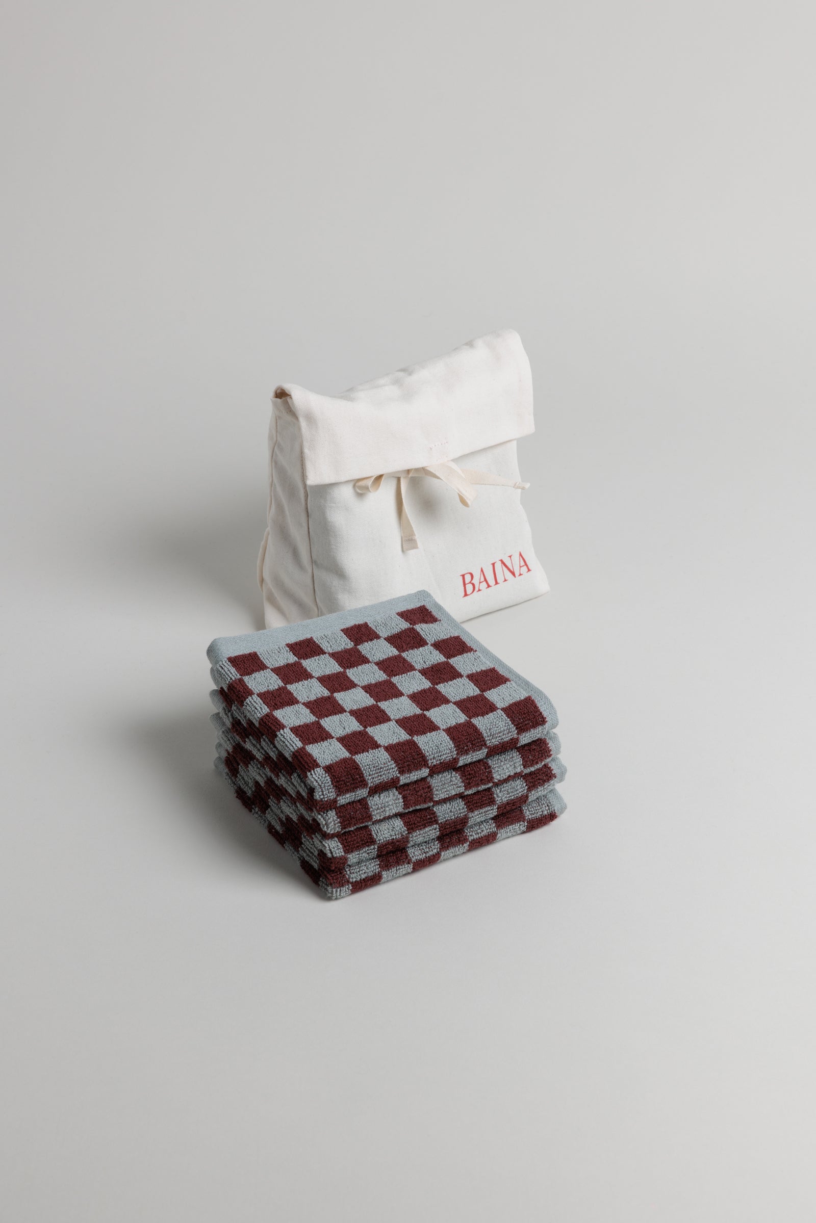 Includes: 4 x Quill face cloths- Cement & Rhus, beautifully presented in a BAINA gift bag