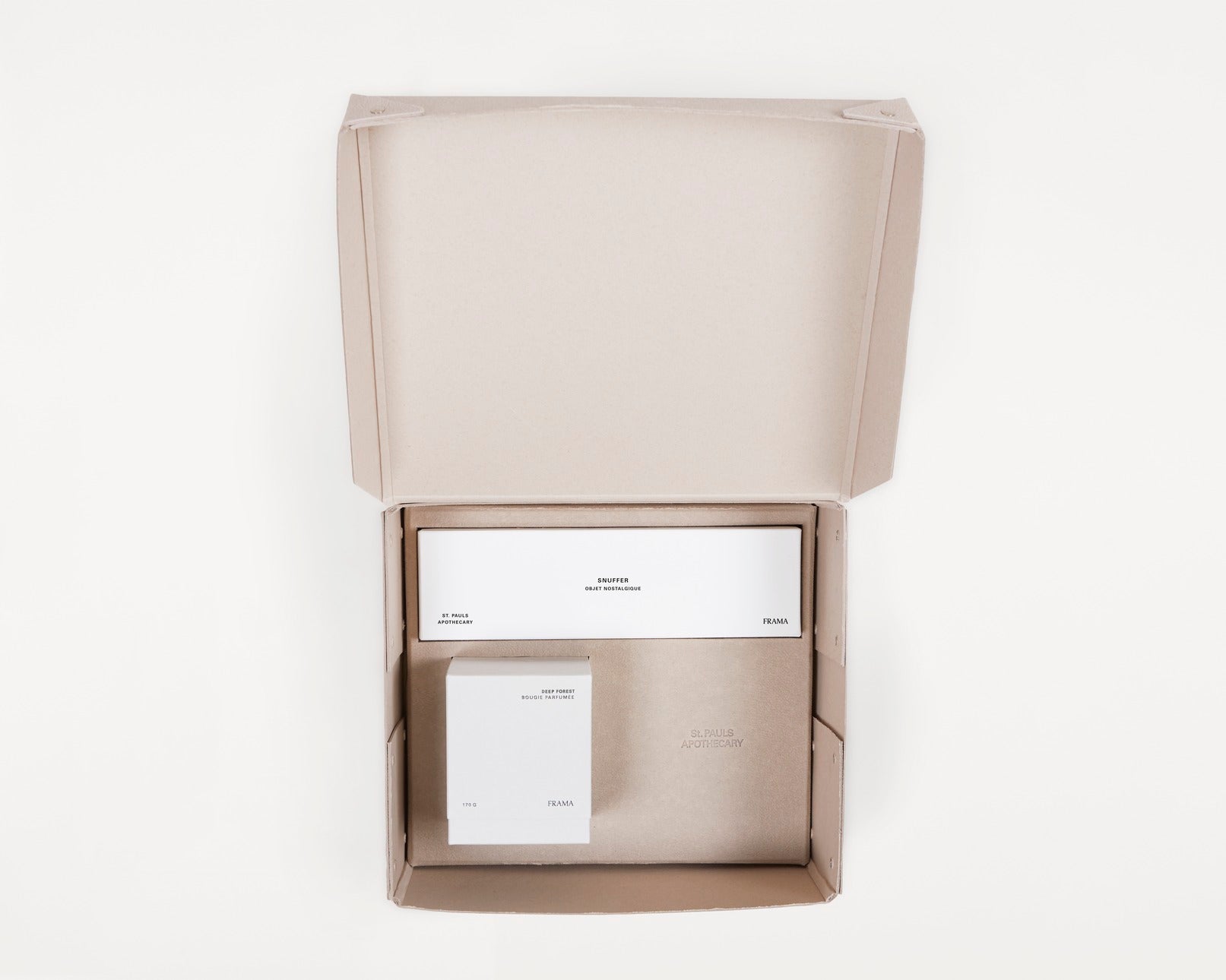 Gift box includes: Deep Forest scented candle & candle snuffer