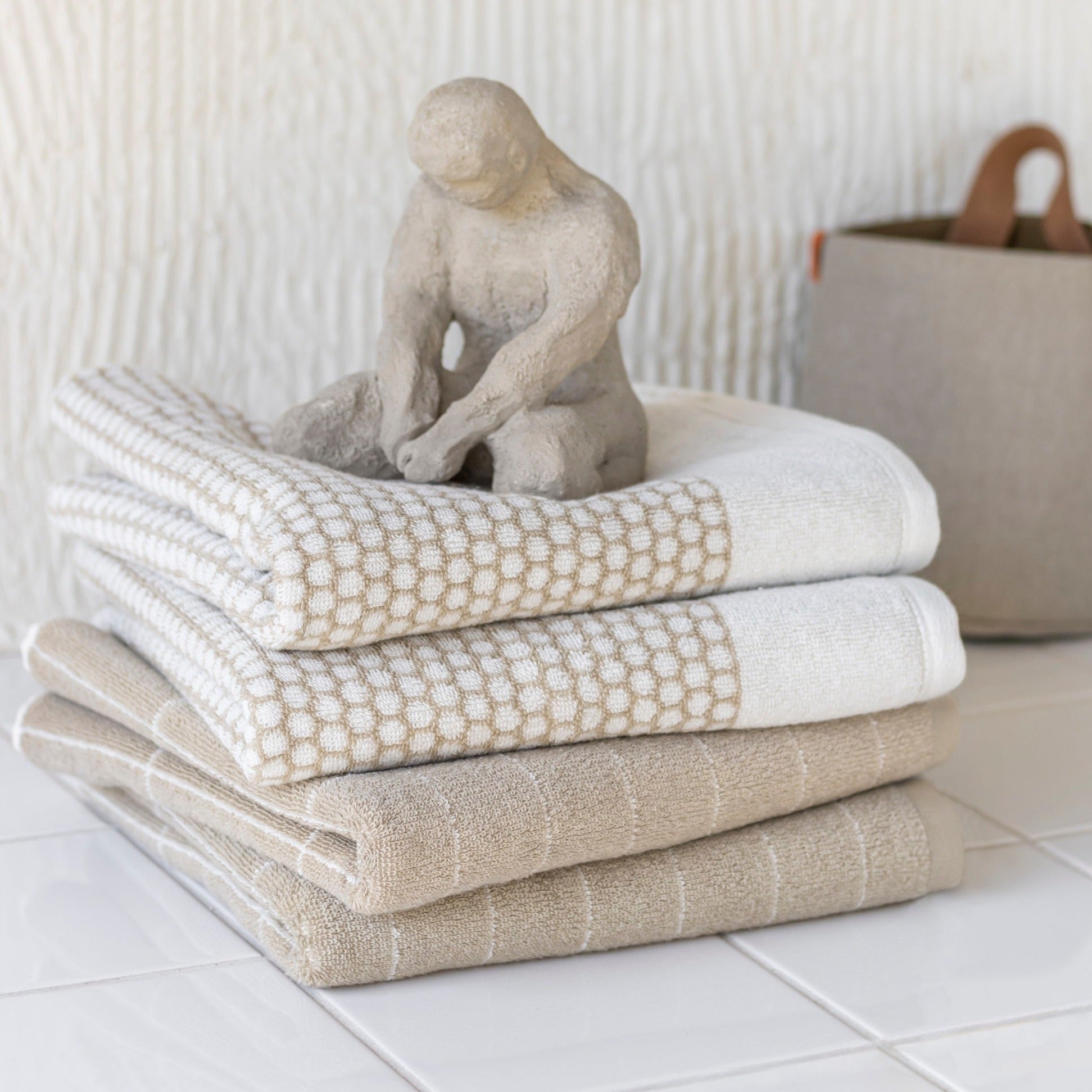 GRID has a graphic and stylish design. The design has a retro look that compliments simplistic, Nordic bathrooms. Mix and match with the rest of the GRID series, as well as the TILE STONE series, to create a dynamic feeling that comes from a mix of graphic patterns. The towels are made from OEKO-TEX® 100-certified cotton, giving the towels a softness that lasts wash after wash.
