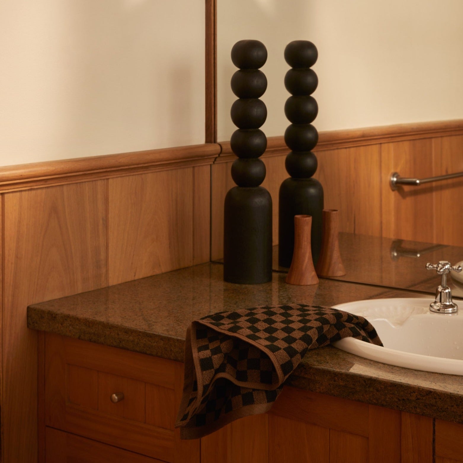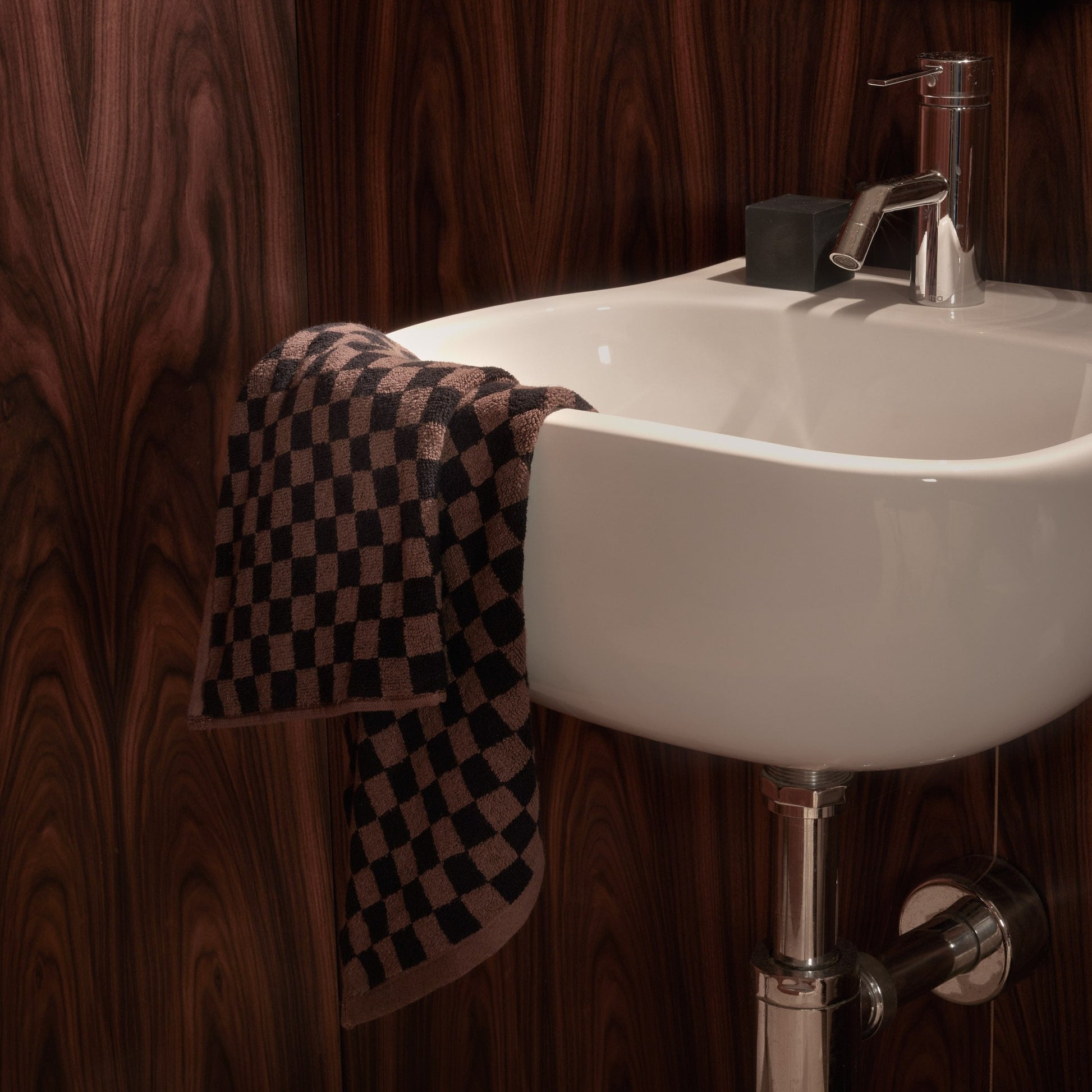 100% Organic Cotton hand towel. Luxuriously soft, in a playful checkerboard, synonymous with the BAINA brand. This hand towel enriches your bathroom with a feeling of luxe and heritage. Pairs nicely with the GREENWICH BATH TOWEL.