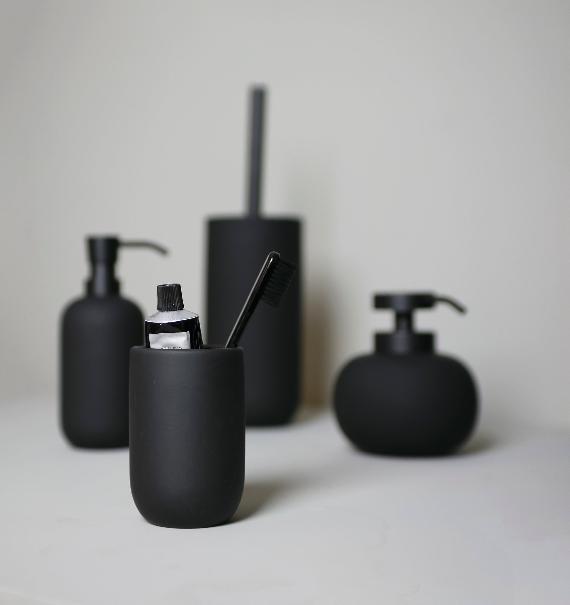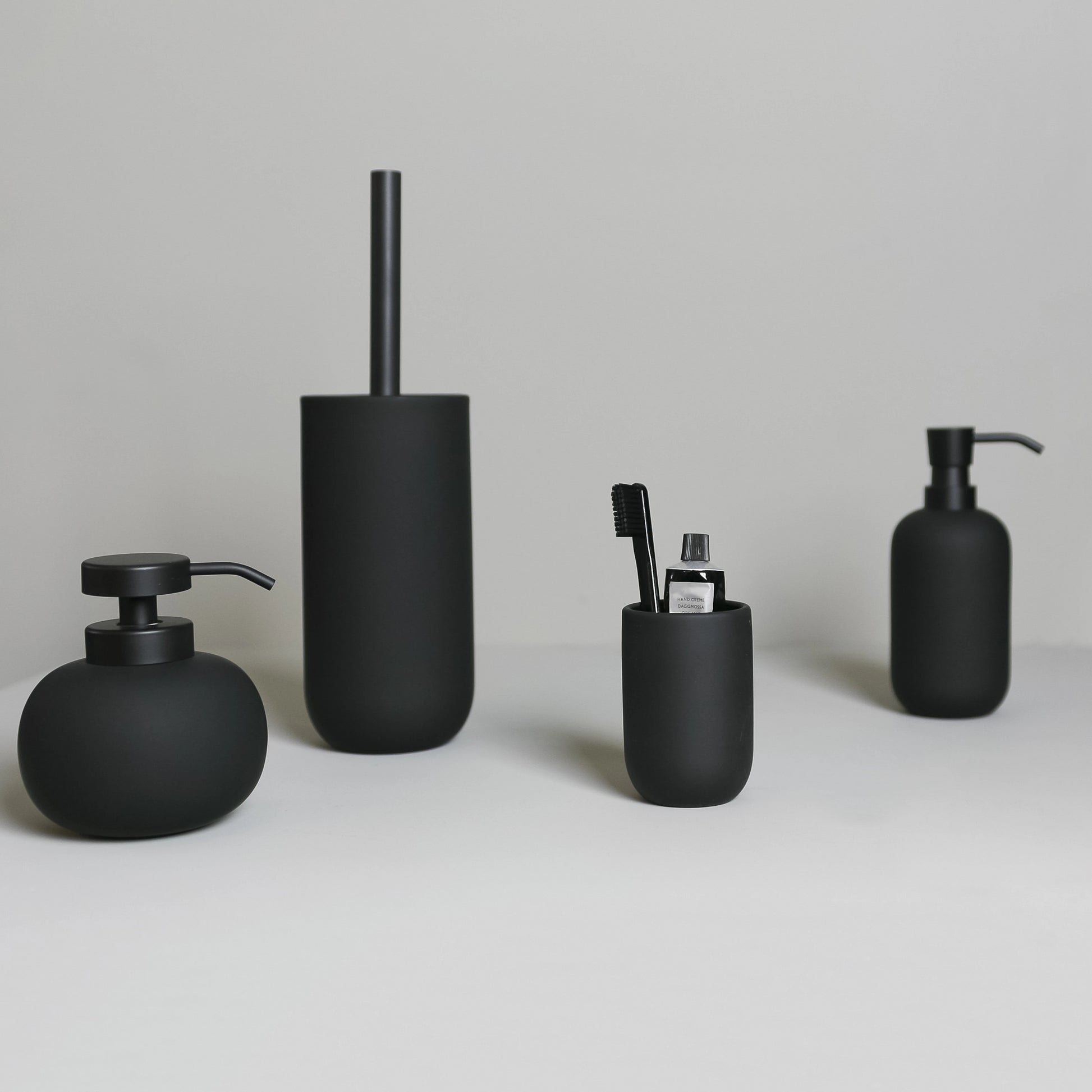The bathroom series LOTUS has soft and organic forms, that create a strong contrast to the deep black colour. LOTUS is made of ceramics coated with a matte rubber finish. This gives the surface of the products a sleek and exclusive look. Use the dispenser for soap in the bathroom, or for dish soap in the kitchen.