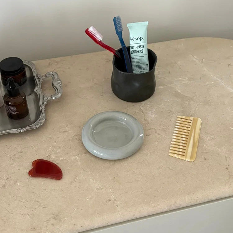 The Luna Bowl is perfect for holding jewellery, snacks, or vanity essentials. Made using a white stoneware clay, topped with a pale blue glaze.