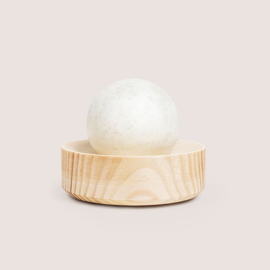 Soap plate from pine heartwood. Keeps the ball soap clean and dry between the washes.