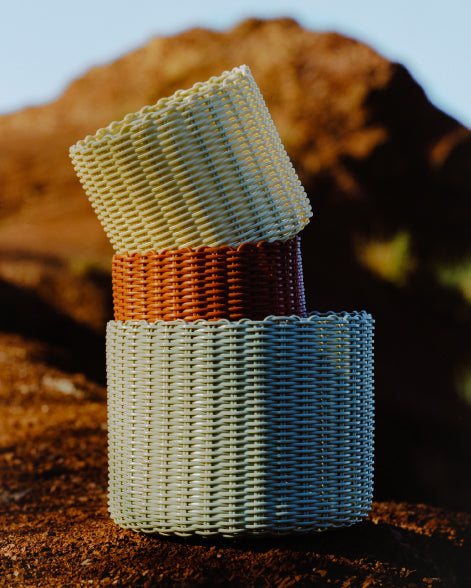 The Pot Extra Small is an home and garden accessory. Consistently with Palorosa craft production, this planter is entirely handwoven in Guatemala, incorporating recycled plastic; this material makes the product light, minimalist and extremely durable. The Pot is characterized by a minimalistic design that enhances every new colour, while evoking Paolorosa’s unique aesthetics. The exceptional ability of our master weavers and their attention to details emerge in the round shape of the product featuring a continuous weaving that ends at its bottom.