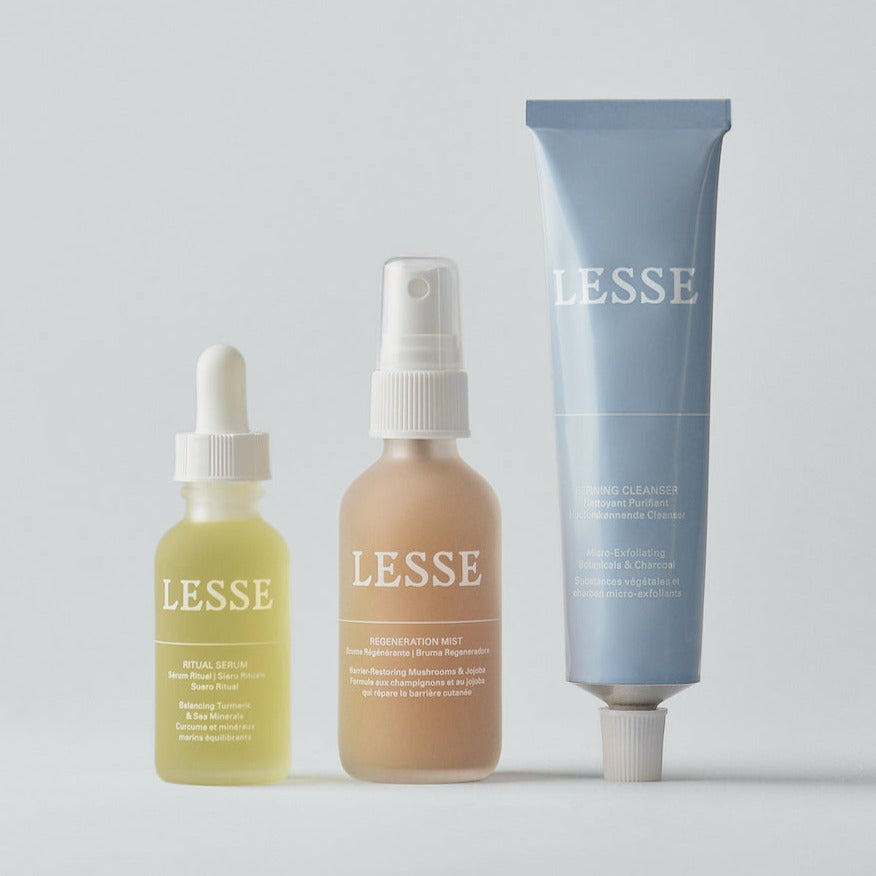 LESSE is a new way of thinking about organic skin care. A simplified ritual of uncompromising, efficacious essentials. Rigorously researched, meticulously formulated and thoughtfully packaged — for optimal impact on your skin and minimal impact on our planet.