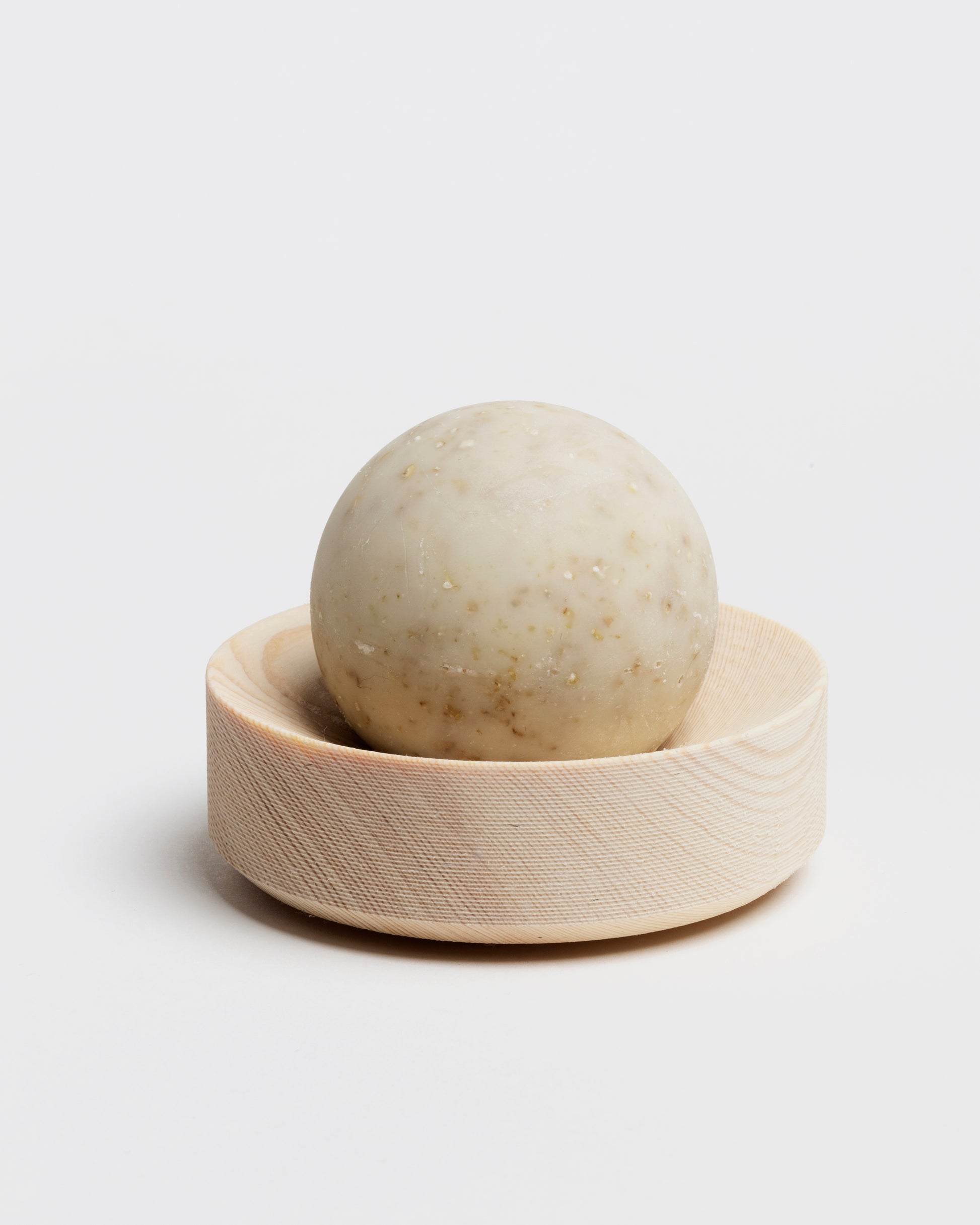 A round soap for daily use. Contains Finnish organic oatmeal, oatmilk and fragrant essential oils from pine. Pine oil is naturally antiseptic and keeps the skin clean for a long time.