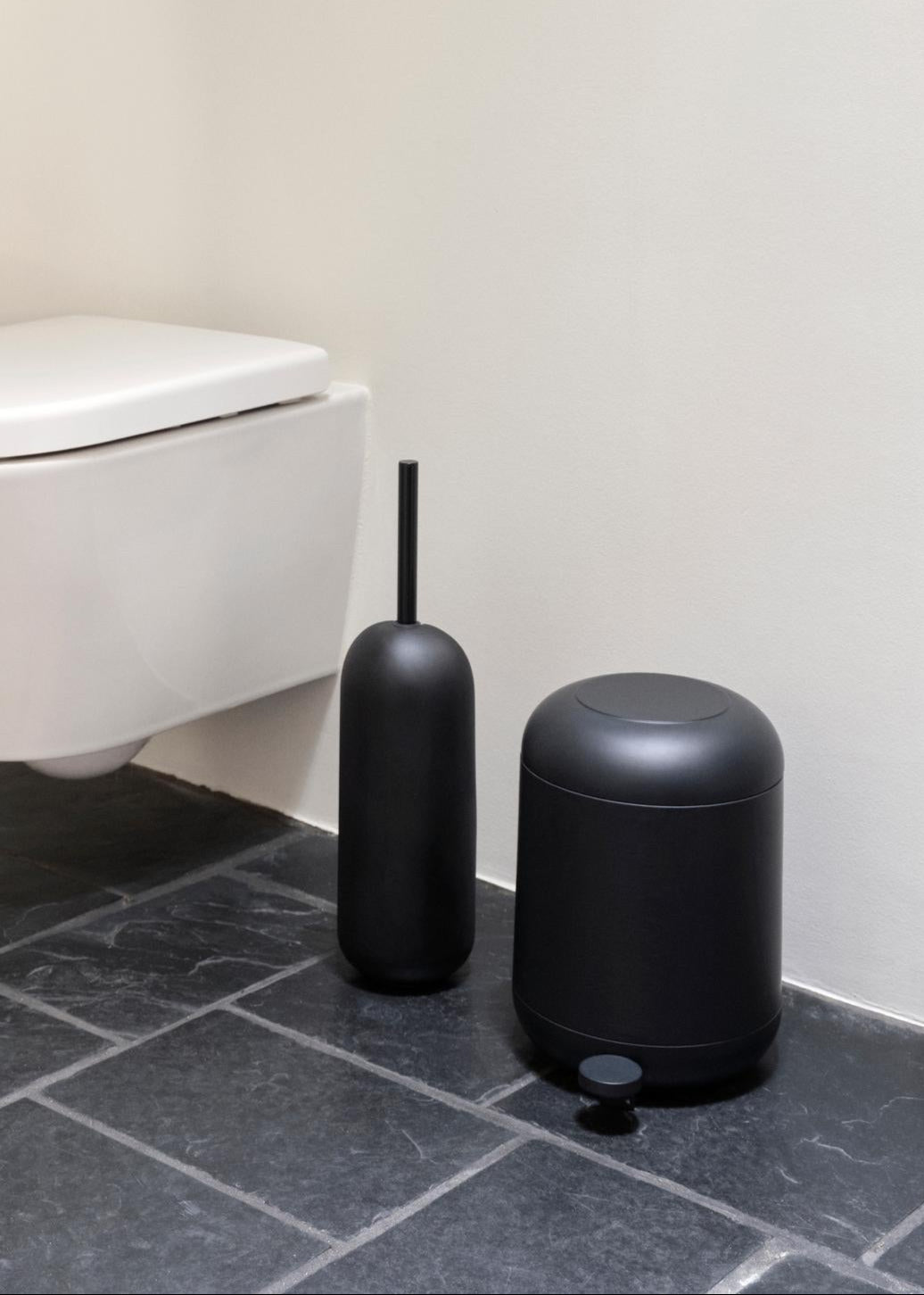 The toilet brush is a reinterpretation of the traditional variants on the market. The open-back design of the holder lets you choose whether to conceal or reveal the brush. Despite its light-weight appearance, the toilet brush sits firmly on the floor. The grip is secure for easy cleaning of the toilet bowl.