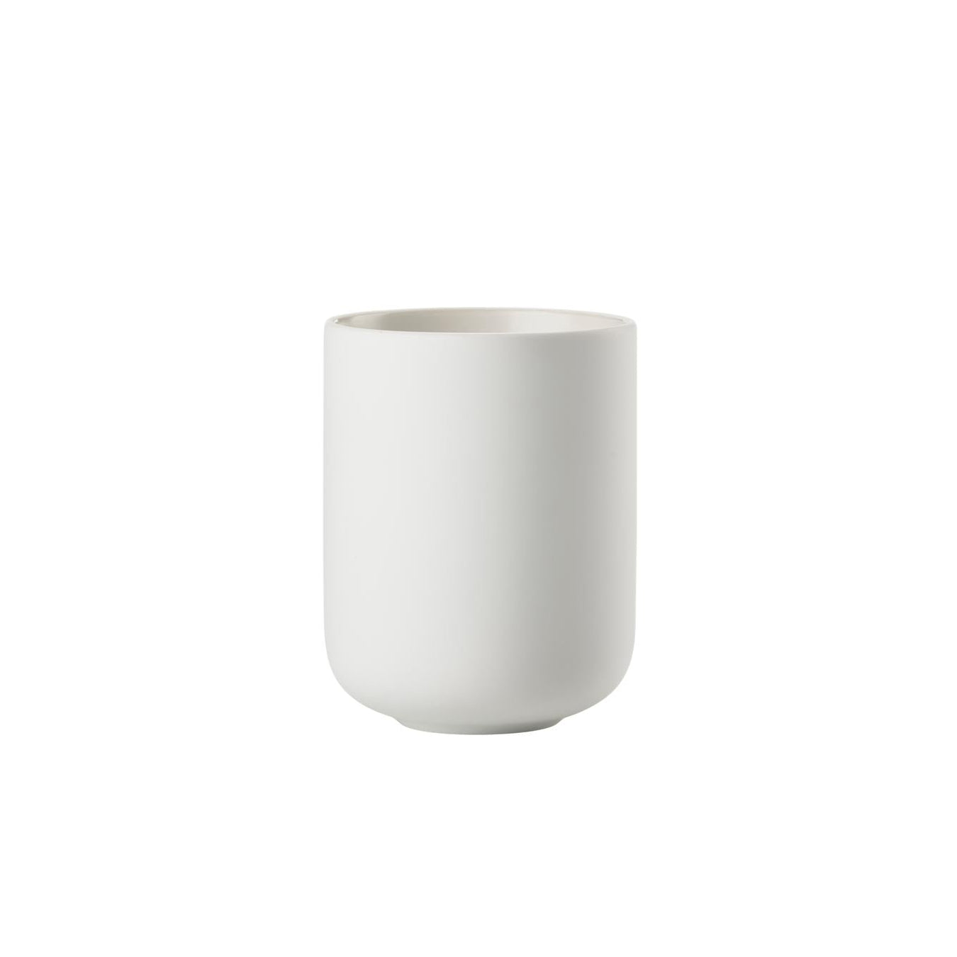 For the washbasin, you’ll find a cute cylindrical soap dispenser with a neat little pump head. It matches the classic toothbrush tumbler, which, like the other designs in the range, is made of stoneware. The weight of the stoneware and the round base keep the toothbrush tumbler sitting securely on the vanity top. You can buy several and use them for make-up brushes, shaving equipment or other everyday favourites that you want to keep handy.