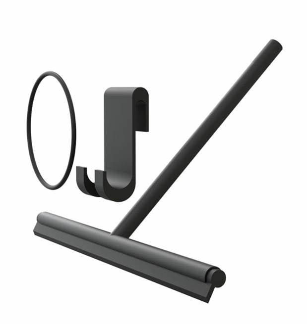 FROST NOVA2 wiper for shower, tiles or windows. Incl. rubber hook and rubber strap. Available in 6 finishes. The different finishes make it easy to match with existing bathroom interior.