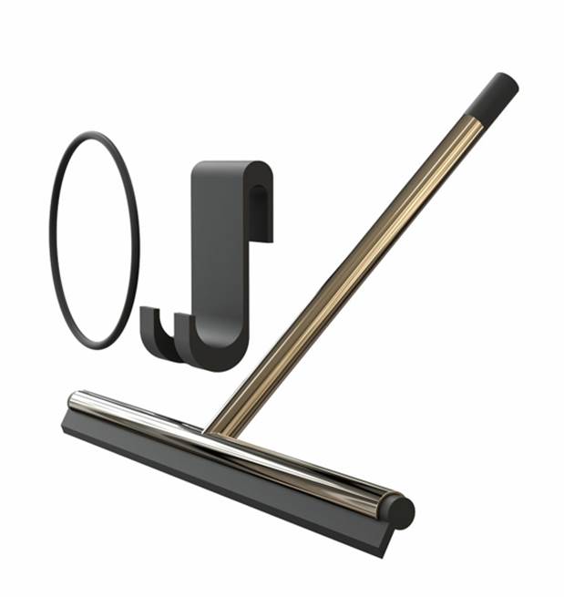 FROST NOVA2 wiper for shower, tiles or windows. Incl. rubber hook and rubber strap. Available in 6 finishes. The different finishes make it easy to match with existing bathroom interior.