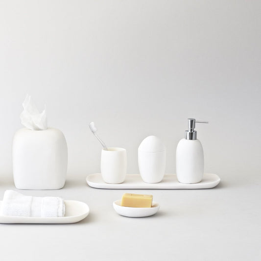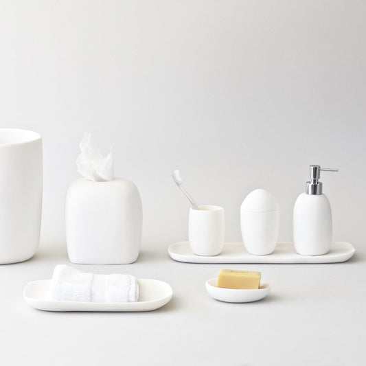 The refined, yet simple design of our Arc Soap Dispenser brings a calm, spa-like feel to your bathroom. For a cohesive look throughout your bathroom, pair with other pieces from our Arc Collection.