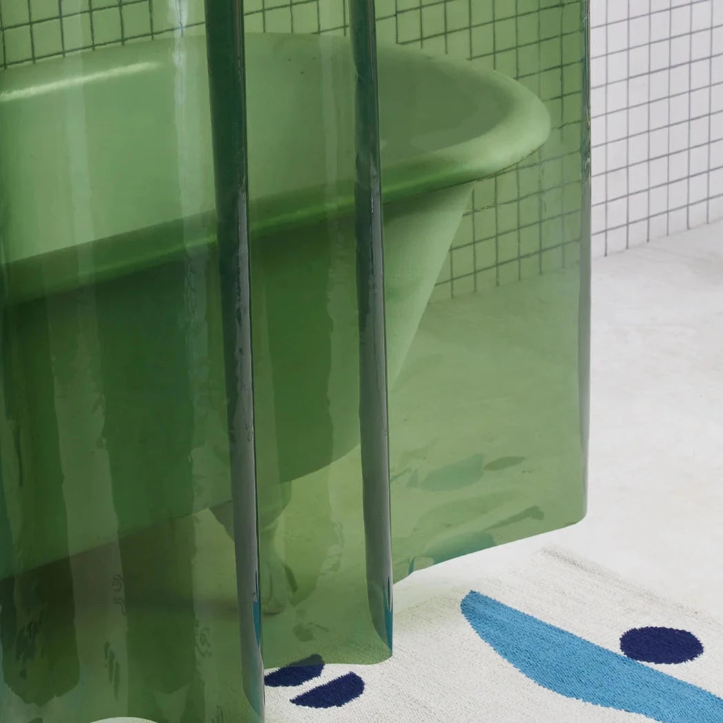 Care instruction: At the first sign of soapy residue, gently scrub clean with a gentle spray cleaner and soft-bristled brush. For more details on caring for your Sun Shower curtain, please see Quiet Town FAQ's. Extreme Heat (temperatures over 120˚F/48˚C) will melt the E.V.A.