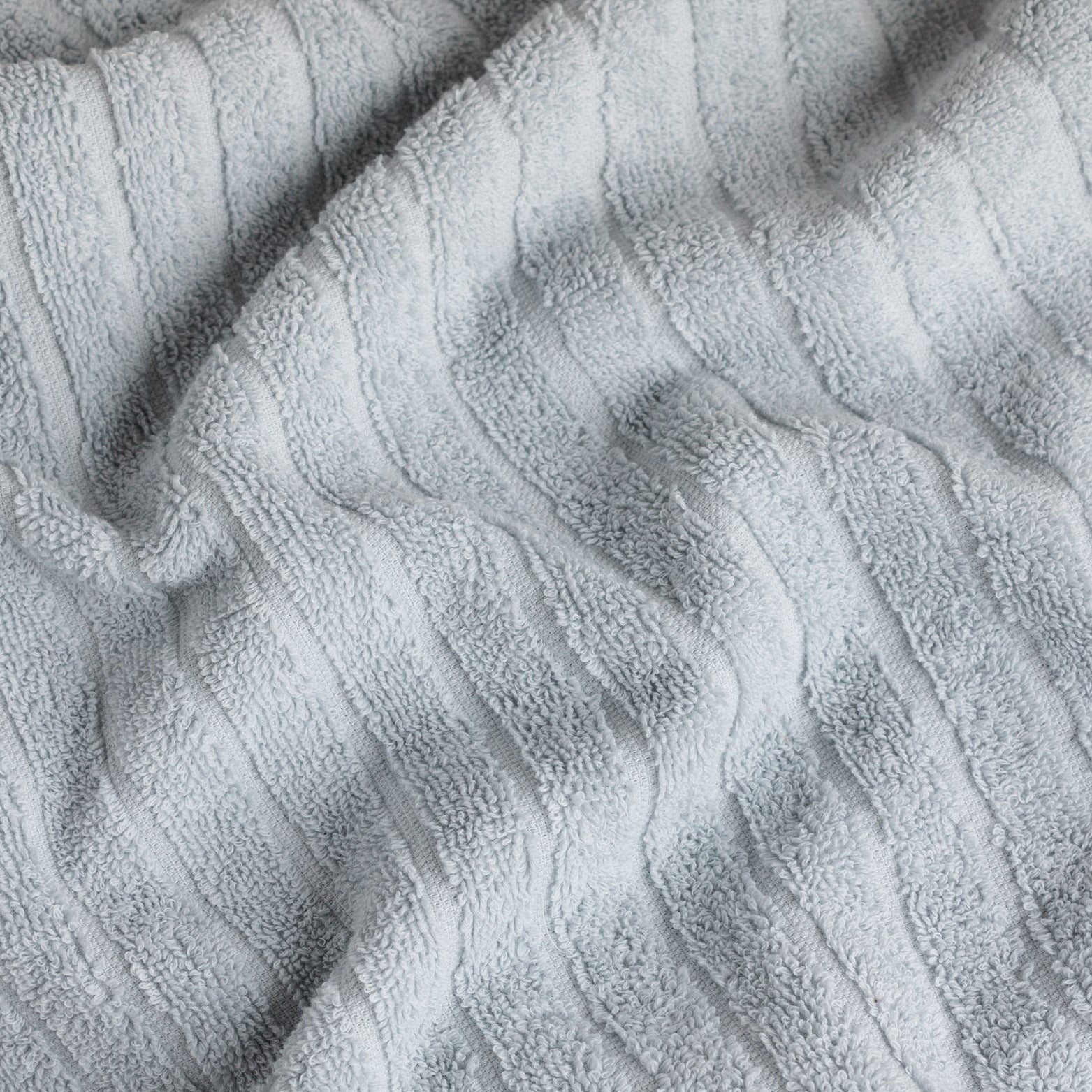 100% Organic Cotton hand towel. In a cool lake blue colour, elongated in length featuring a single sided ribbed panel. Luxuriously soft and subtle, makes for a perfect accessory to elevate any bathroom or ensuite. Pairs nicely with the HAYES BATH TOWEL.