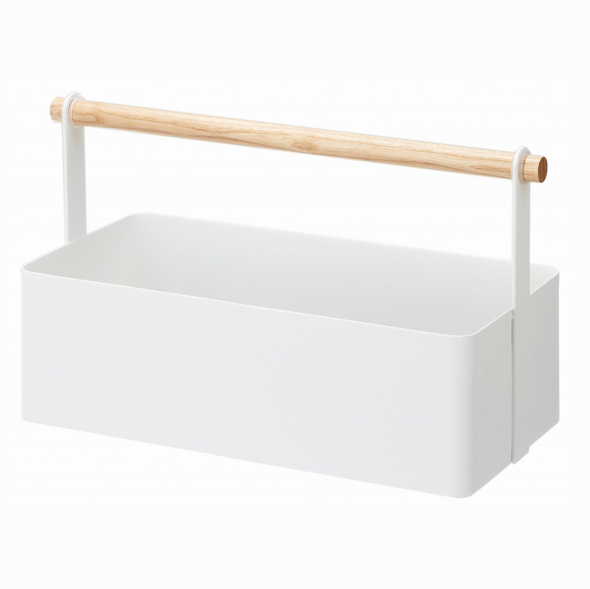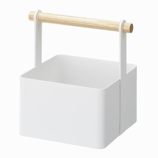 This multi-purpose caddy is designed with style so that you can use it as a decorative piece as well. Keep your countertop organised yet stylish with this Yamazaki steel tote with wood handle. It makes a great bathroom toiletry caddy, a kitchen spice caddy, or a craft room supply caddy. It has a strong, sturdy build, yet can be picked up and moved easily.