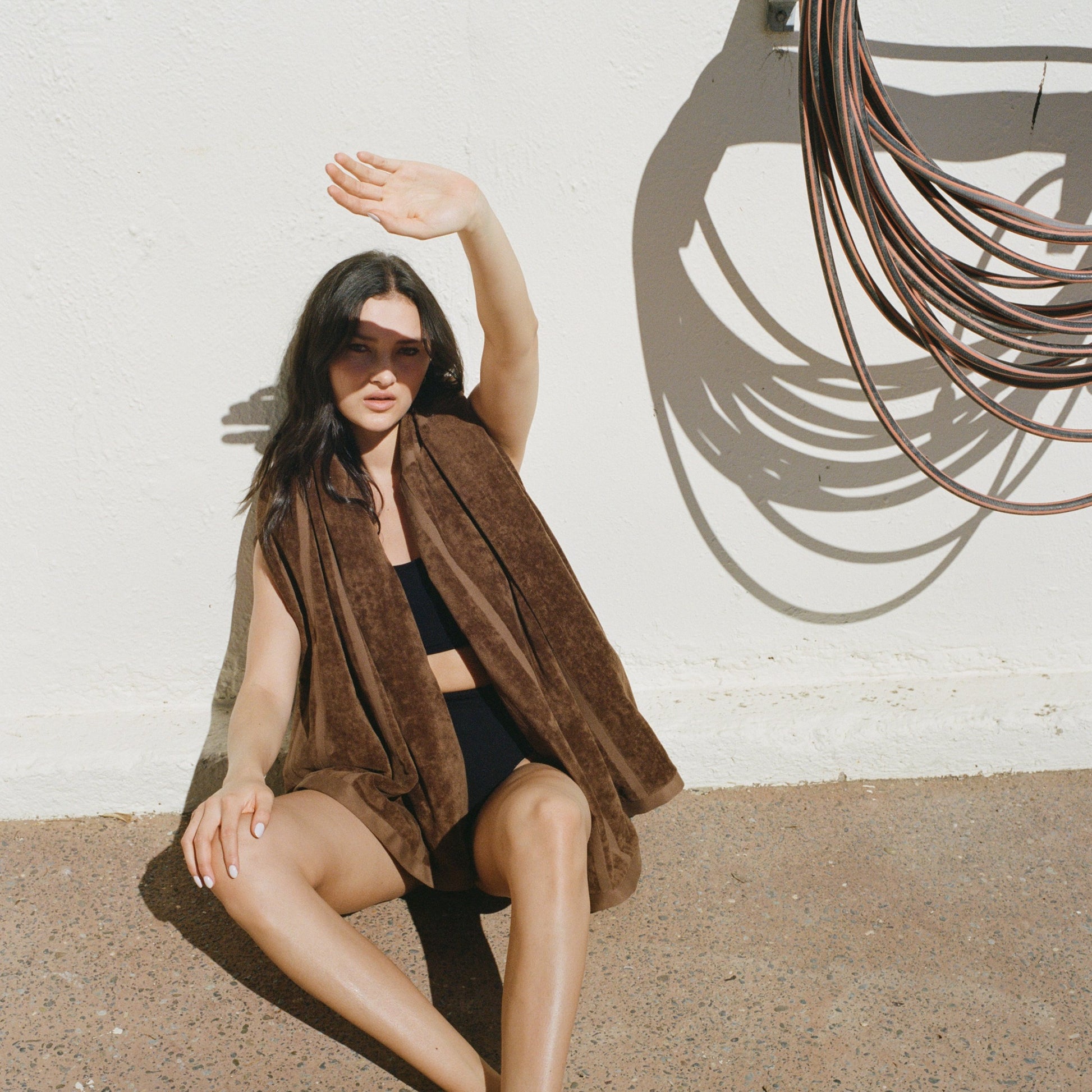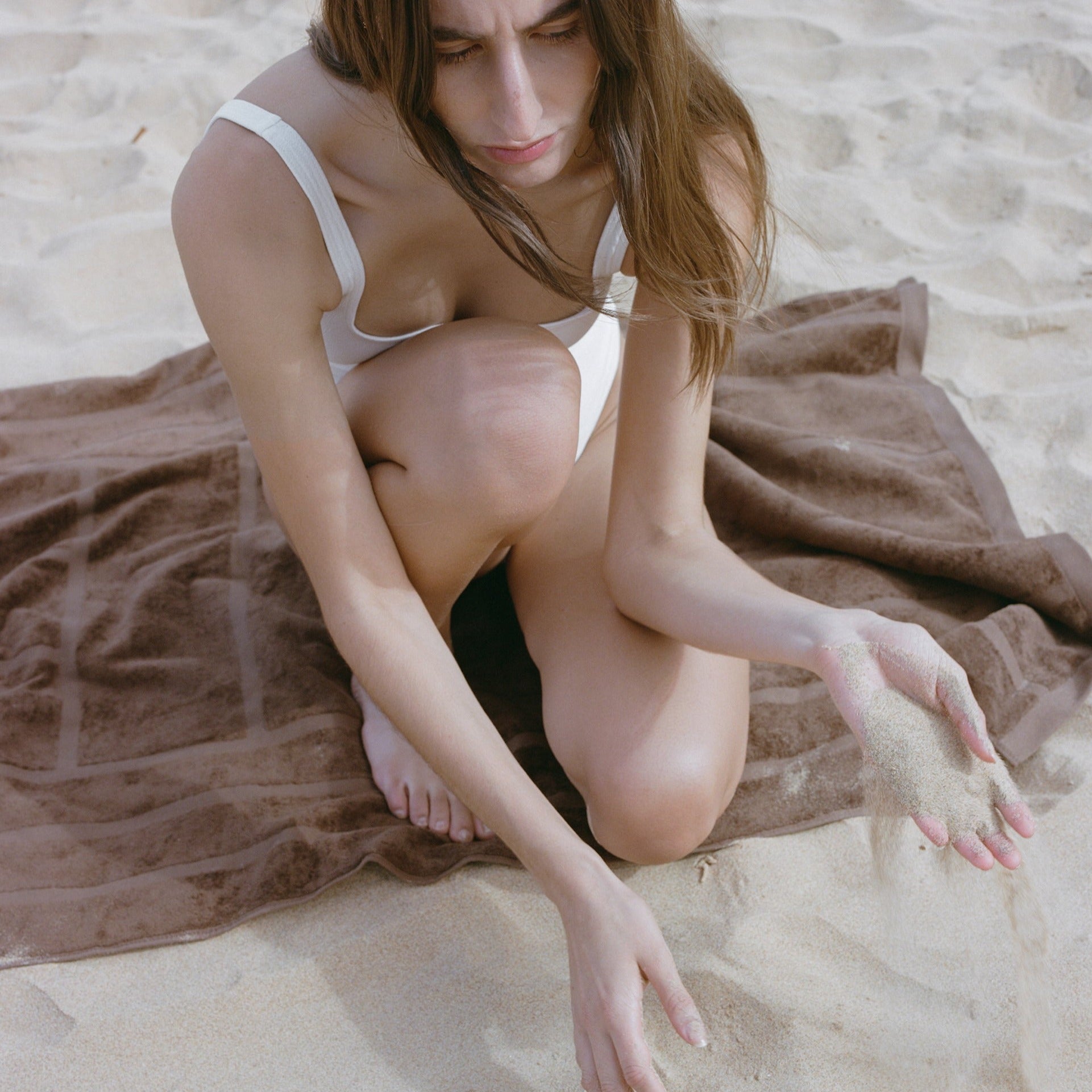100% Organic Cotton pool towel. The jacquard gate motif displays a simple symmetry consistent with the current BAINA designs. The cut pile velour only intensifies the luxe tabac hue, sending us into a time warp, somewhere off the Italian coast circa 1972. Pairs nicely with the GREENWICH BATH TOWEL.